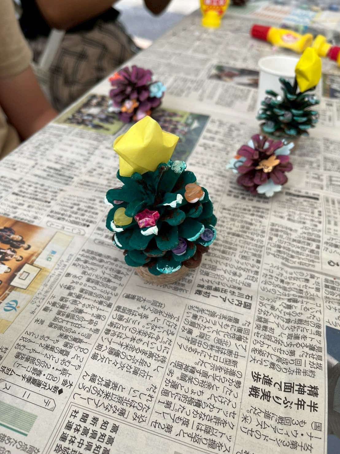 内容:松ぼっくりを使ったクリスマスツリー作り